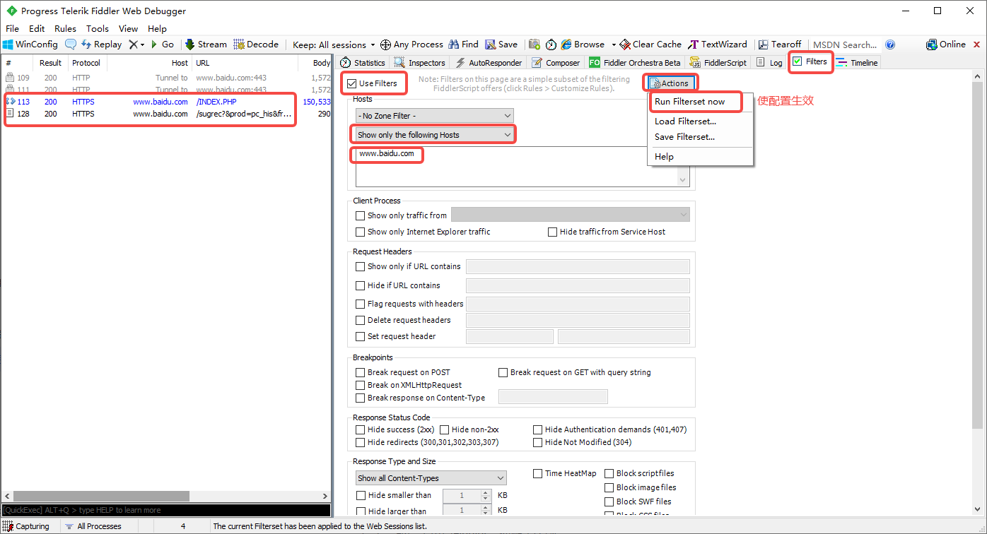 - 在使用中因为在不停的发送请求,导致很多时候找不到想要的请求,我们可以使用过滤器。