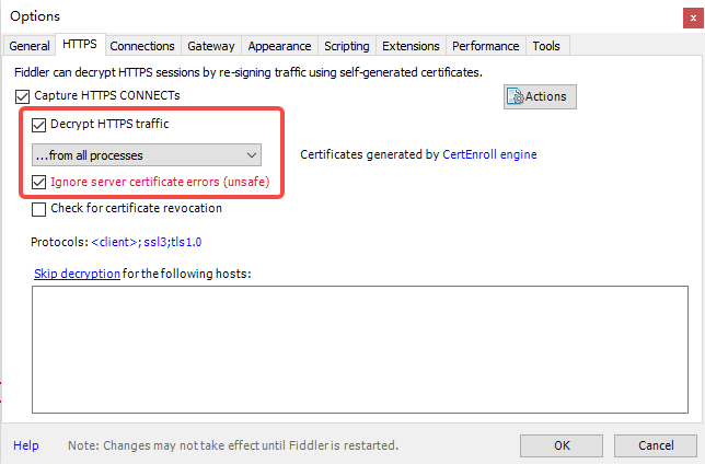 打开Fiddler --- Tools --- Options --- HTTPS。