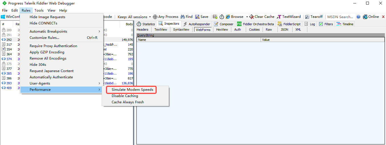 - 更改后,继续Rules --- Performances --- Simulate ModemSpeeds 选择速度。