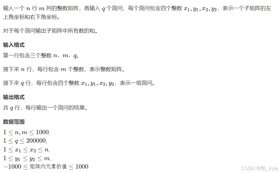 print(suma[x2][y2] - suma[x1 - 1][y2] - suma[x2][y1 - 1] + suma[x1 - 1][y1 - 1])