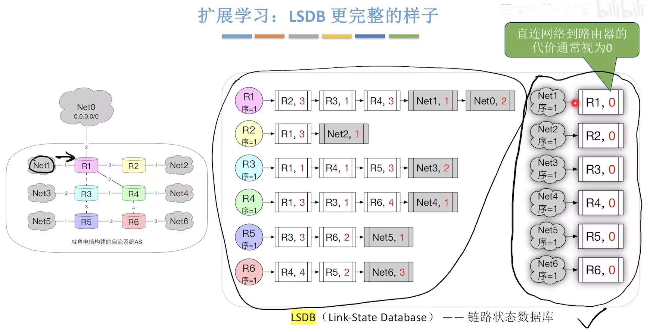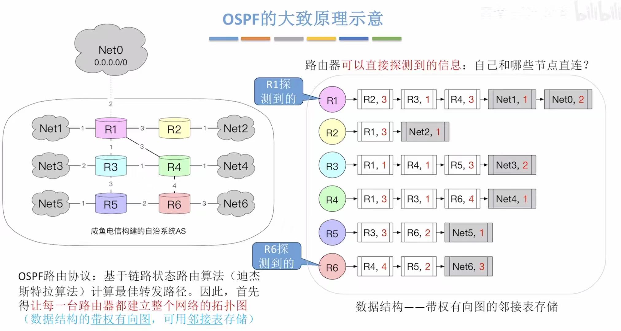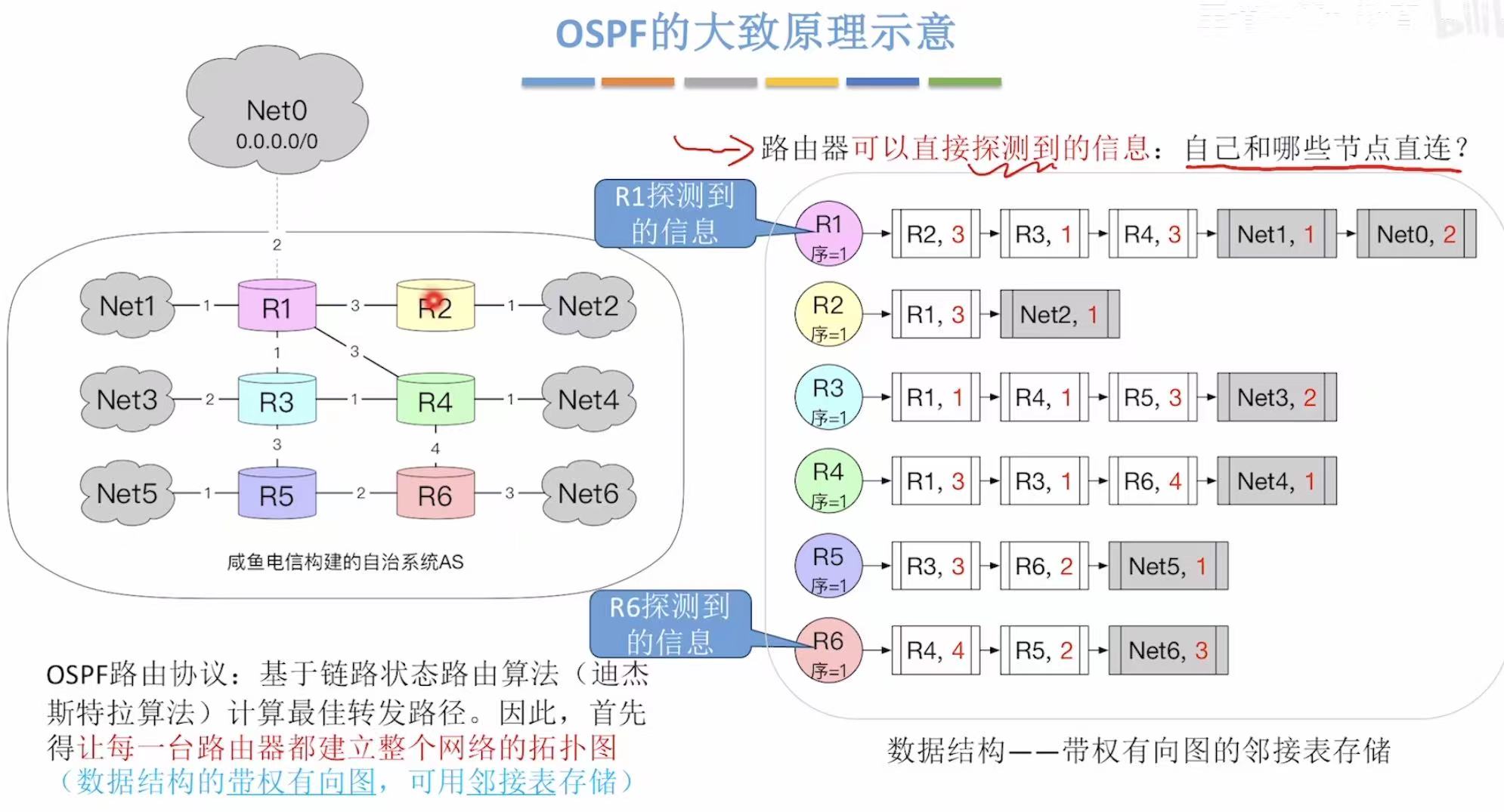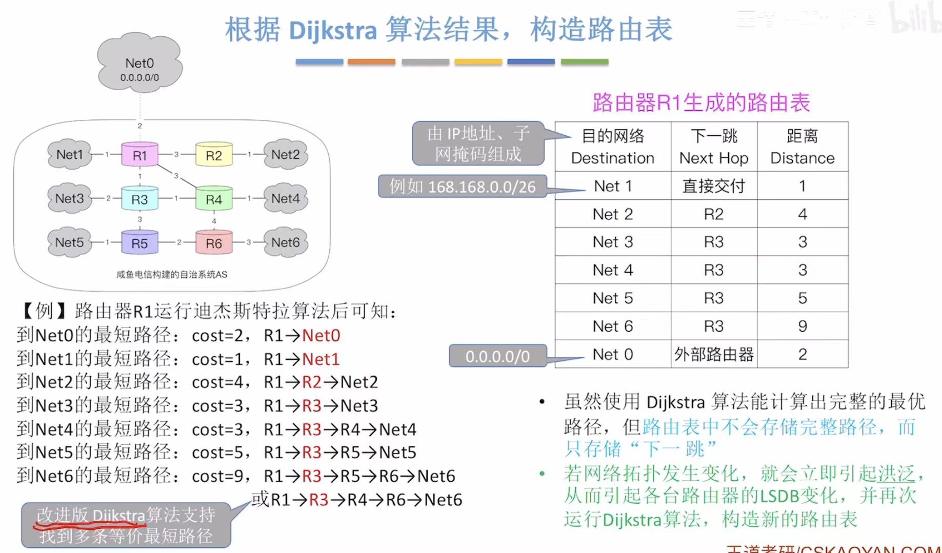 直接探测信息-->LSDB-->迪杰斯特拉-->获得最短路径