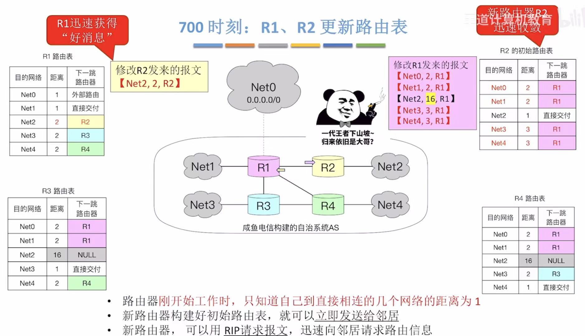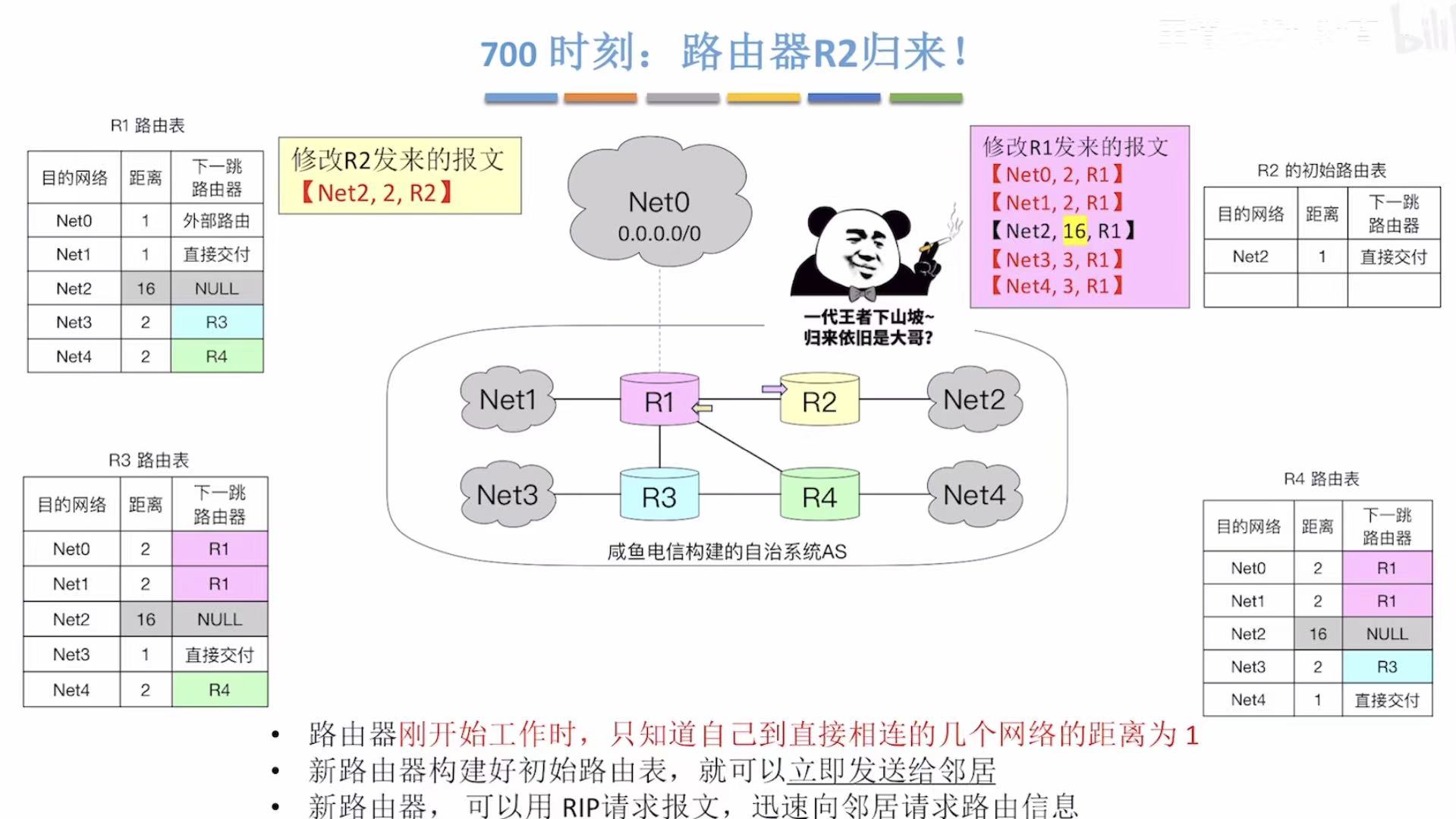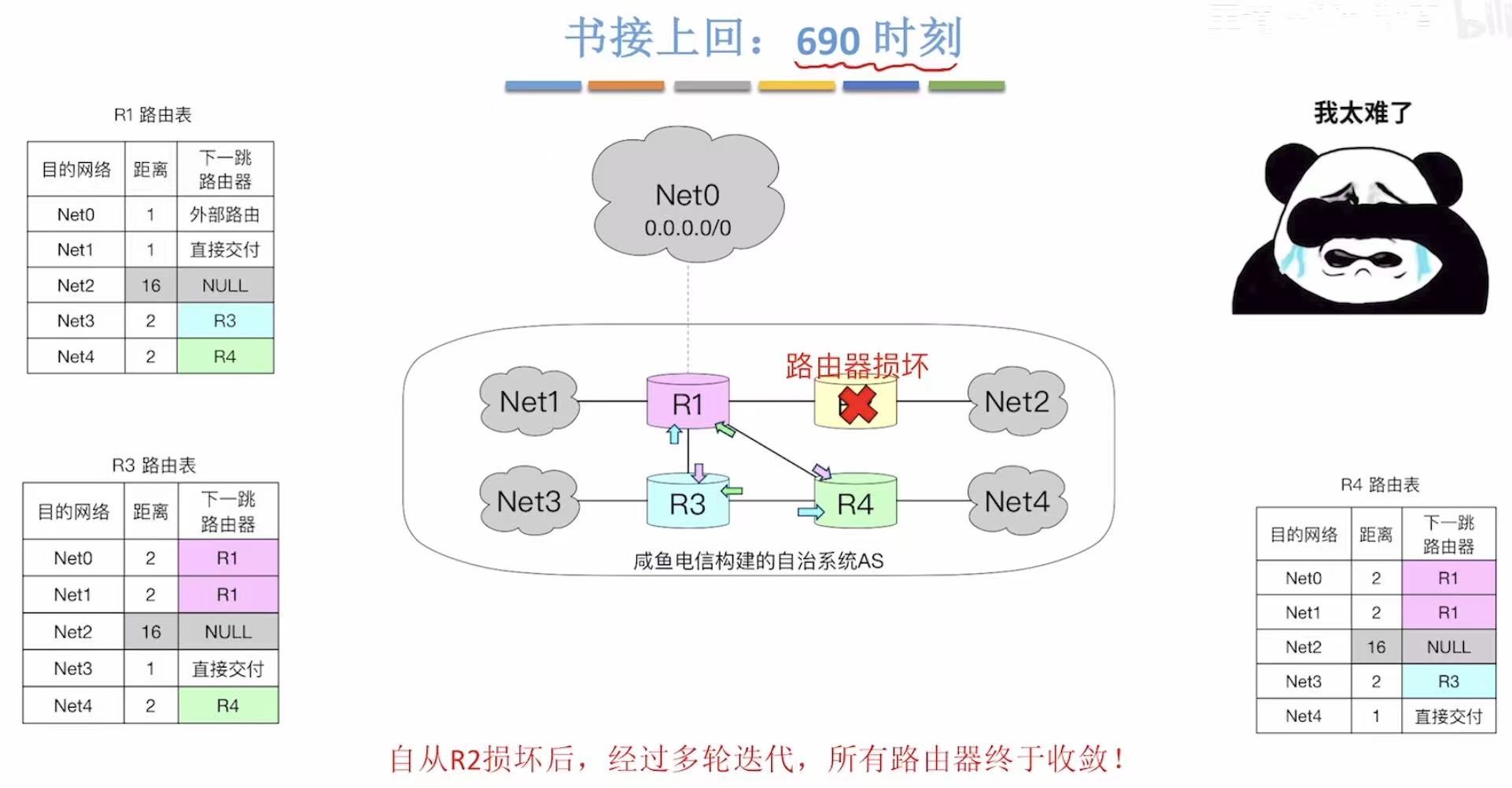 总之一直到每个路由器到Net2的距离变为16,变为不可达的时候,这三个才幡然醒悟: