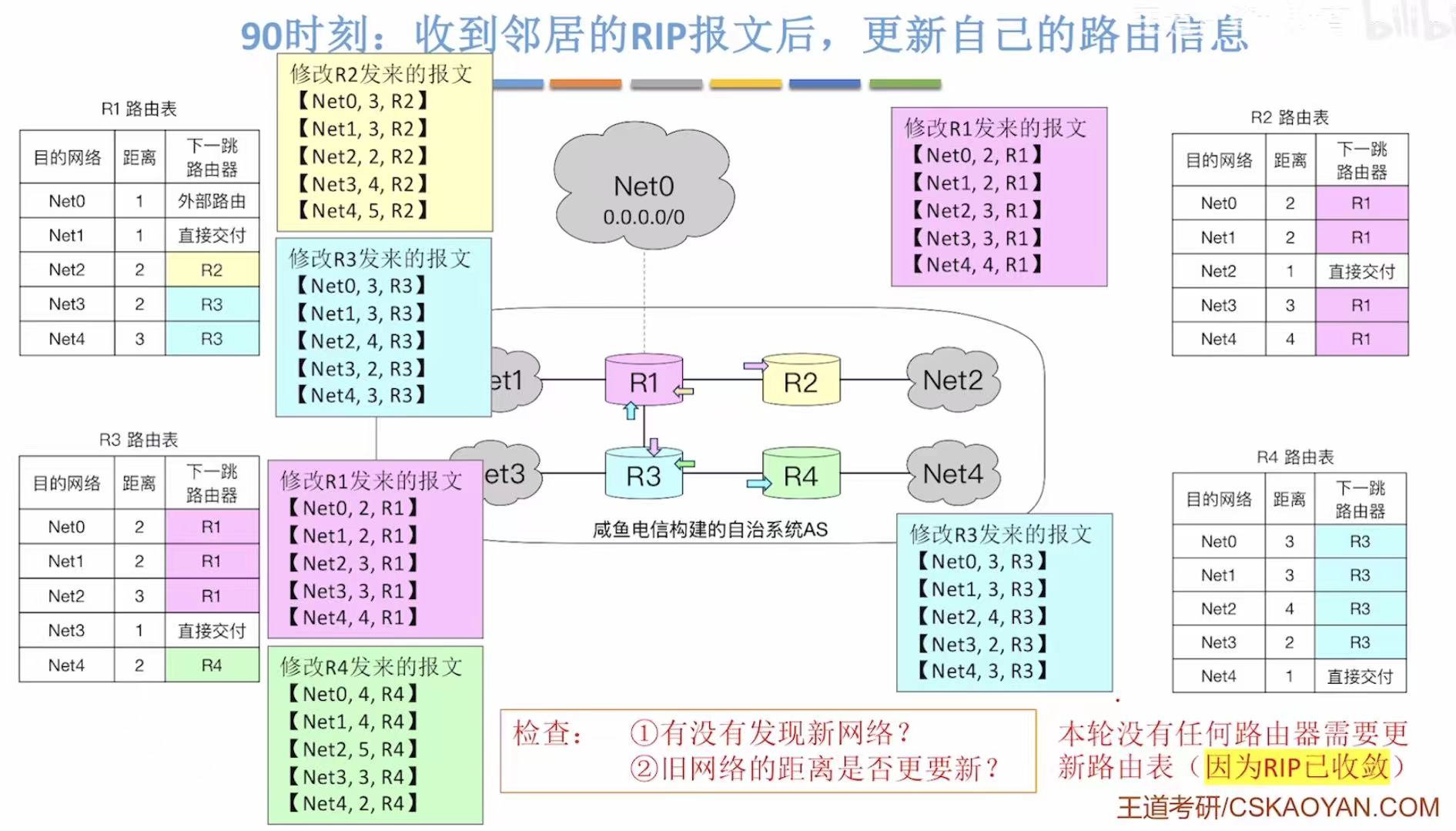又过了30s,也就是90s,因为作业都抄完了,所以所有路由表都不变了