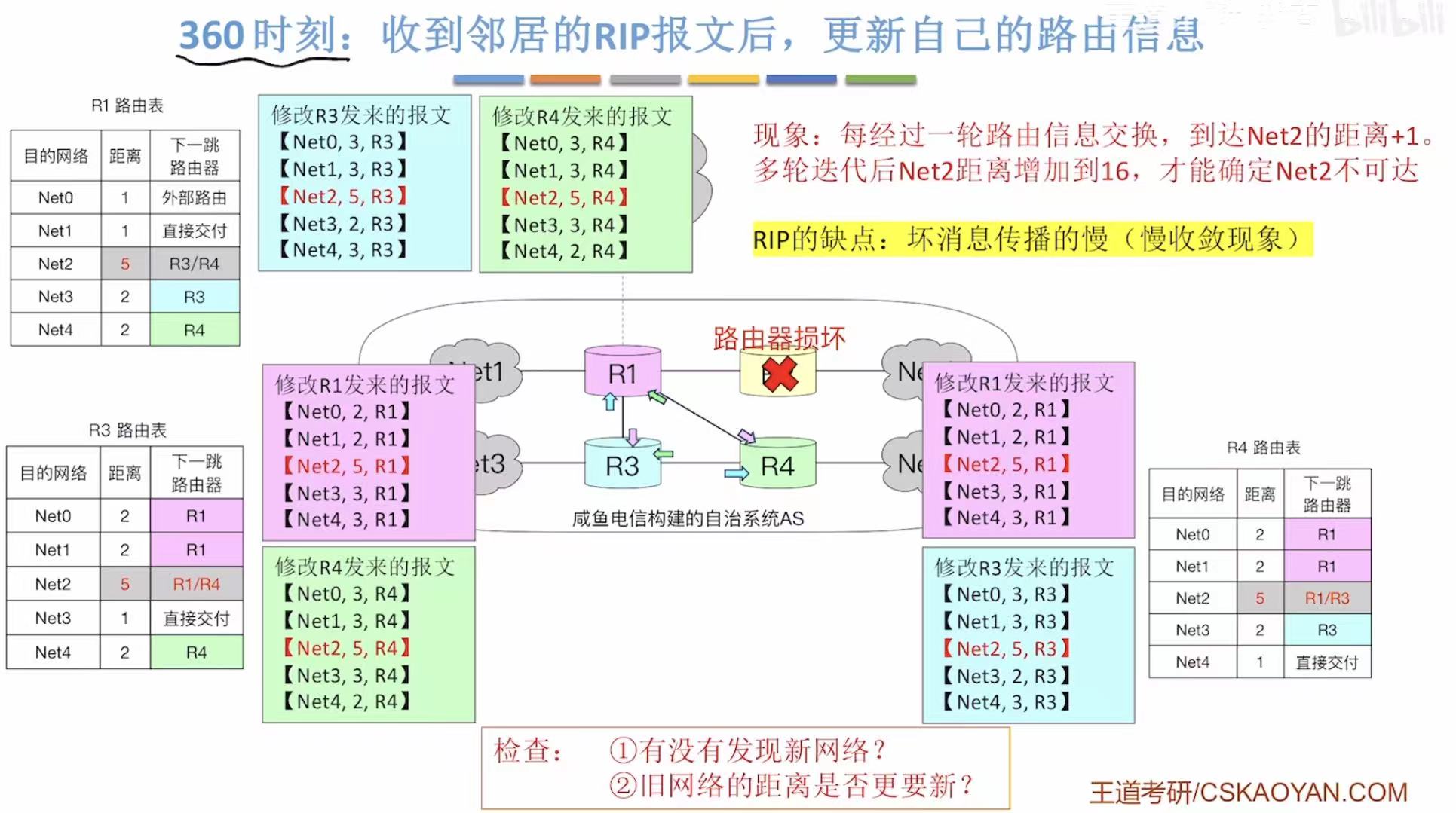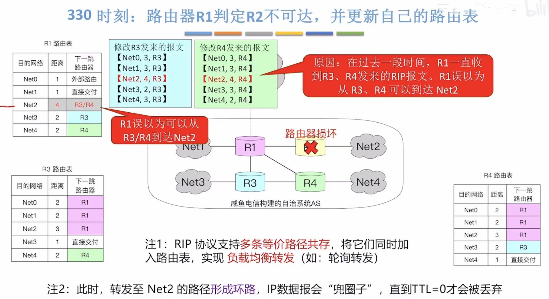 R1真诚地以为R3R4可以到达R2,结果R3以为R4可以到R4以为R3可以到: