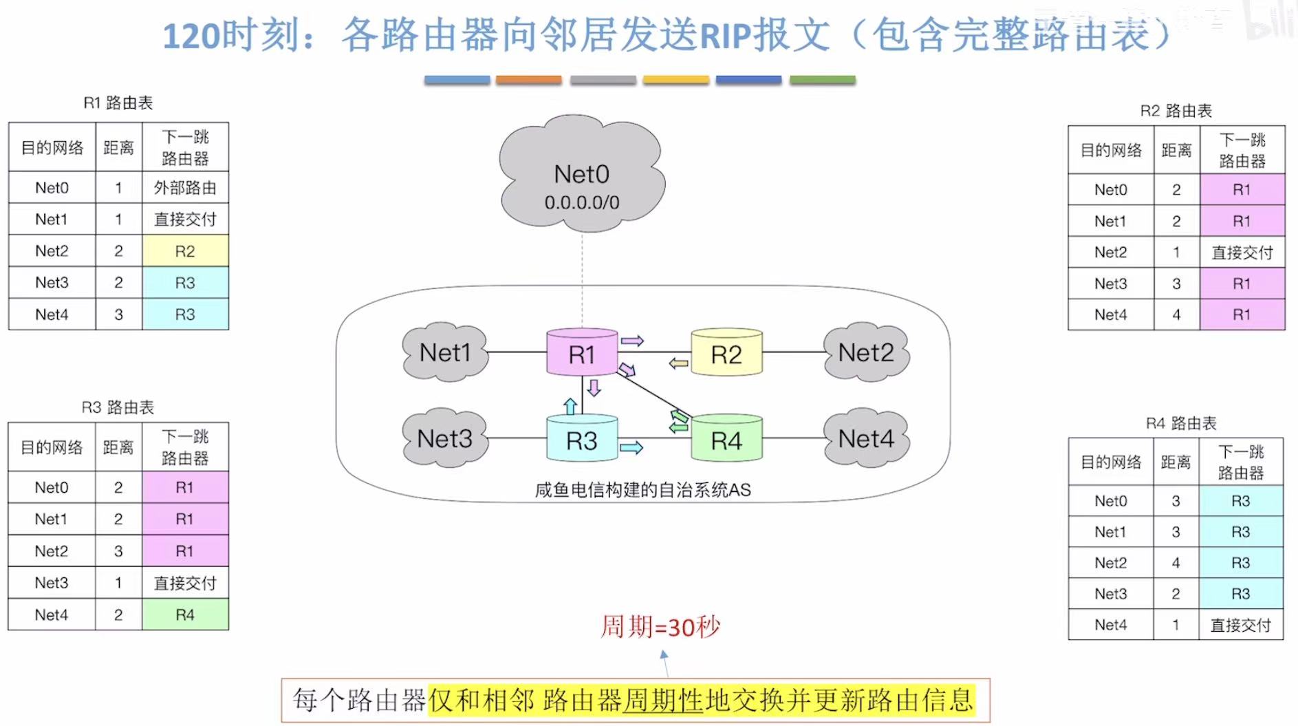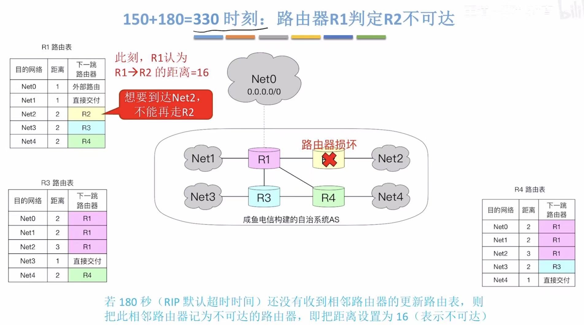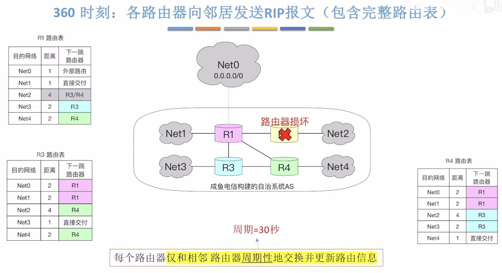 复习:RIP每30s发送一次信息,超过180s认为不可达