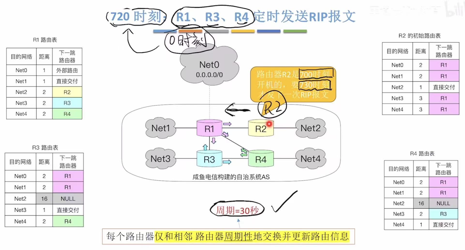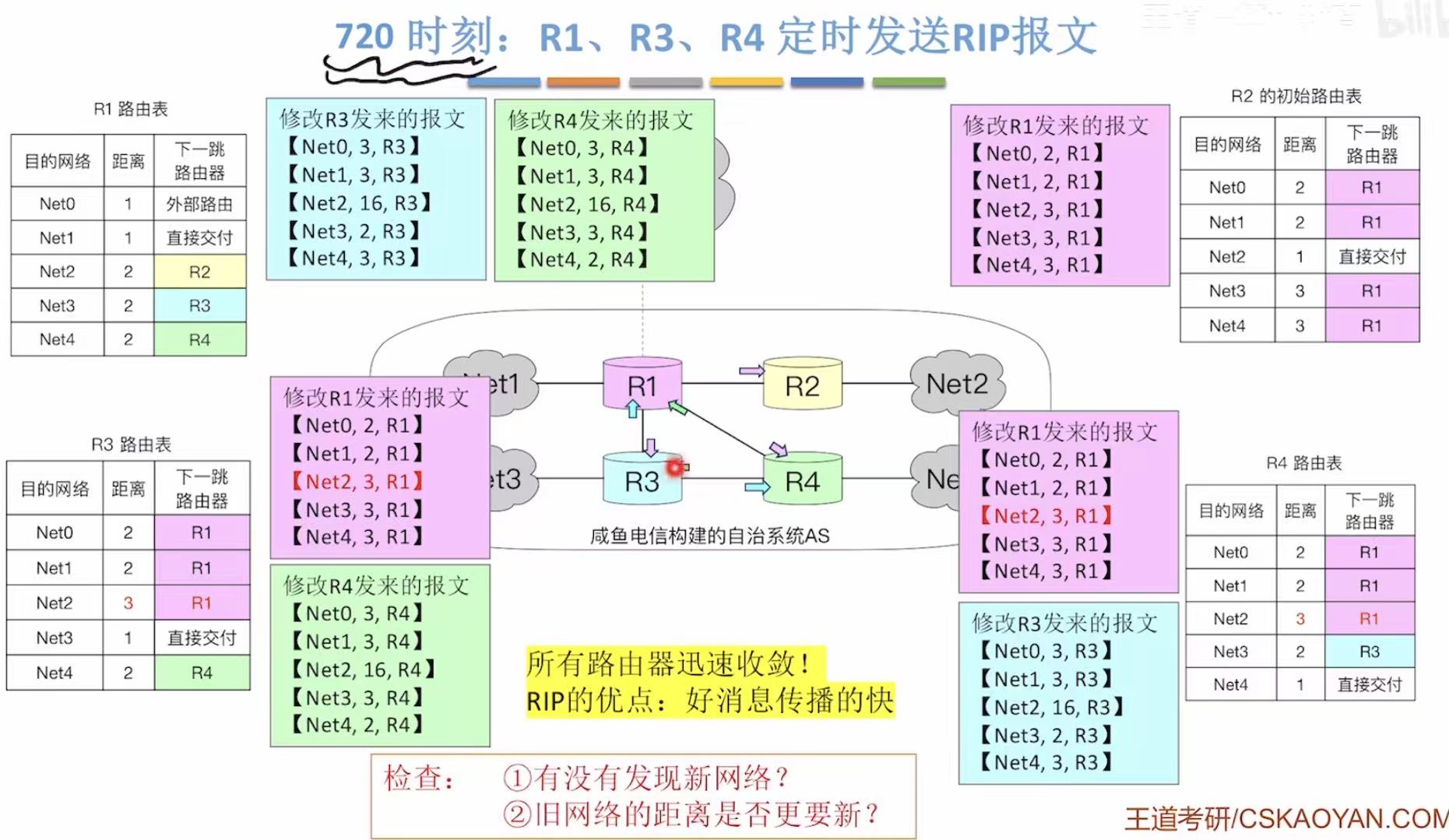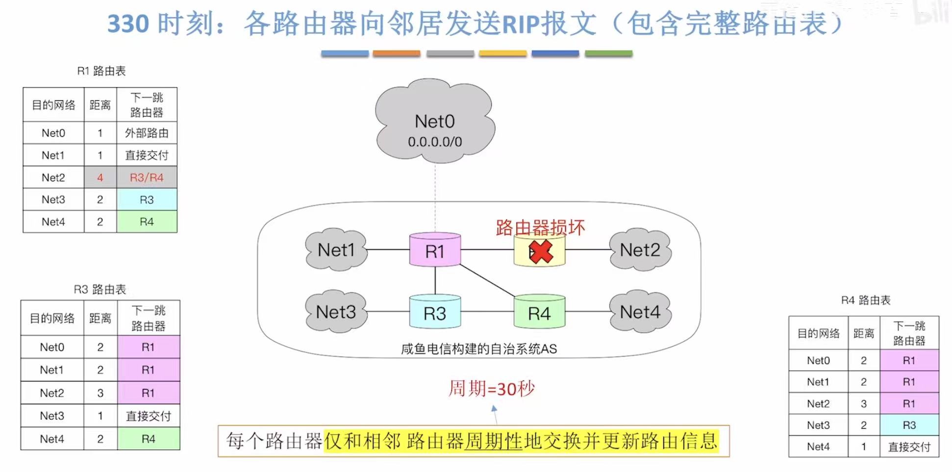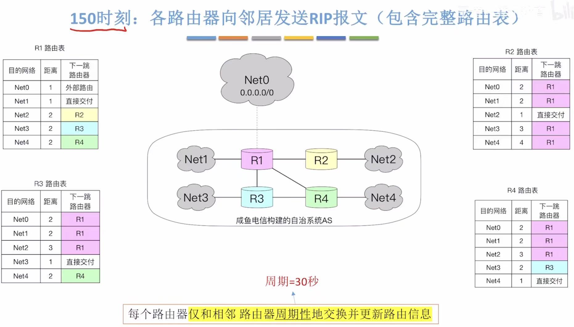 复习:RIP每30s发送一次信息,超过180s认为不可达