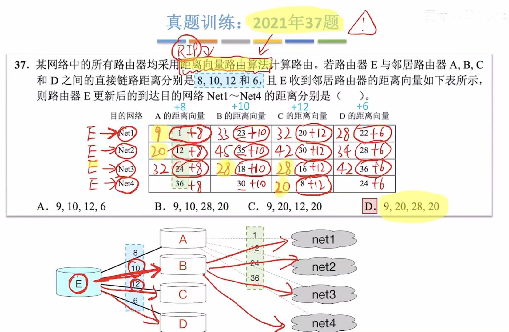 考点:RIP属于应用层 ,它使用UDP 传送数据,端口=520