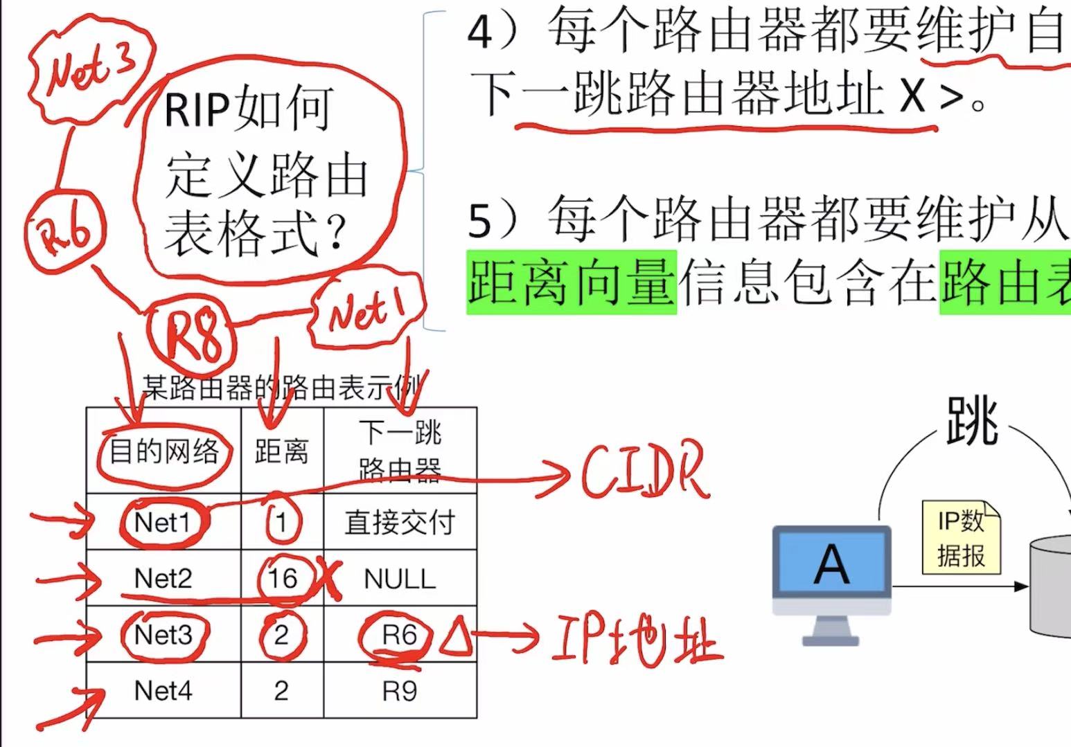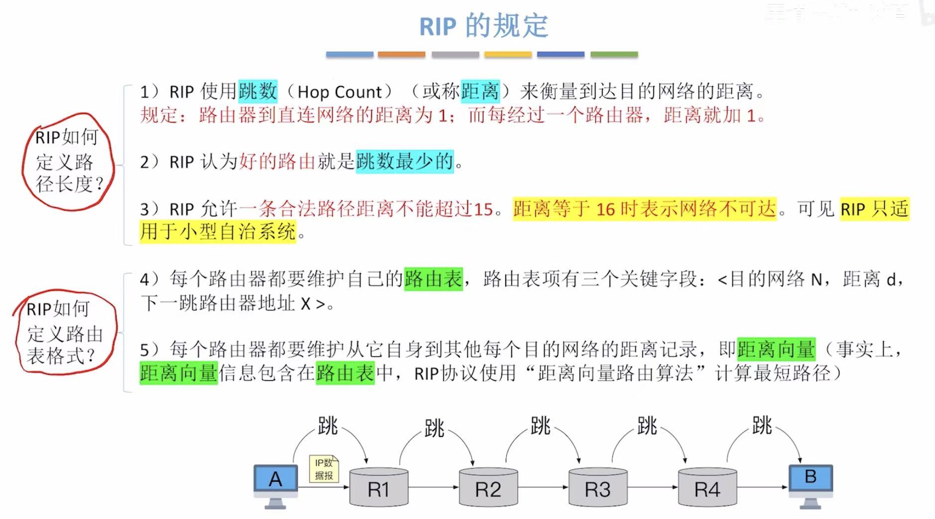 上文提到过RIP只看最短距离,这里用跳数 来表示距离,距离最大为15 .