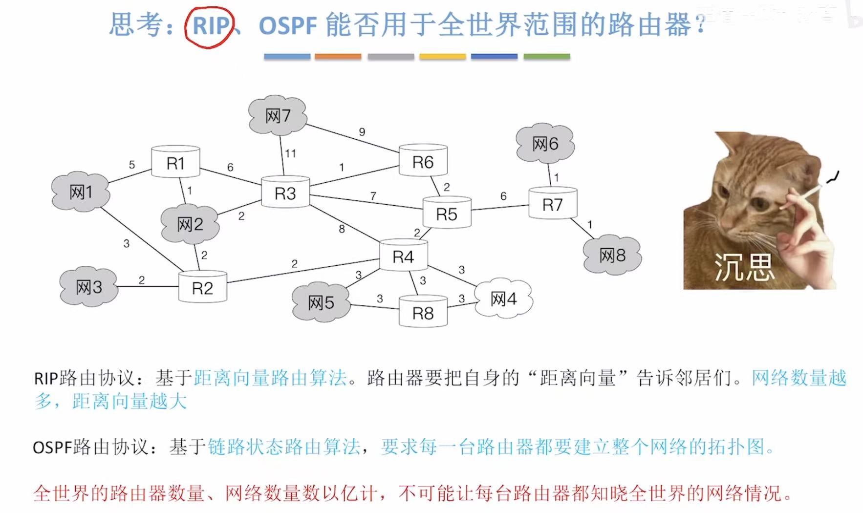 如果这两个协议作用于全世界的路由器上,RIP的距离数字只会大得难以想象,OSPF的路由表就会记录全世界的路由器,显然加重了路由器的负担,所以我们该怎么优化呢?