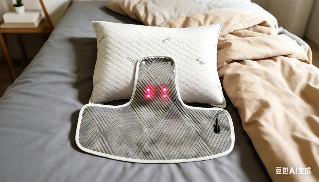 这款专利颈椎枕的巧妙之处在于,它突破了传统颈椎枕单纯支撑的局限,创新性地引入了近红外线照射疗法,将物理支撑与光疗相结合,从多个维度缓解颈部和肩部的疼痛。通过精准对应人体穴位进行照射,能更有效地发挥光疗的效果,同时可拆卸和可调节的设计,充分考虑了不同用户的体型差异,大大提高了产品的适用性和用户体验。