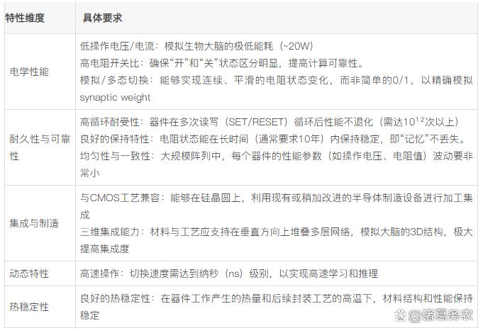 类脑硬件对材料的要求极为苛刻,远高于传统数字电路: