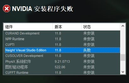 最近,安装CUDA安装进度条一次次卡在Nsight Visual Studio Edition安装失败的错误提示,我已尝试了网上能找到的所有方法,最终发现了一个被忽略的简单选项。