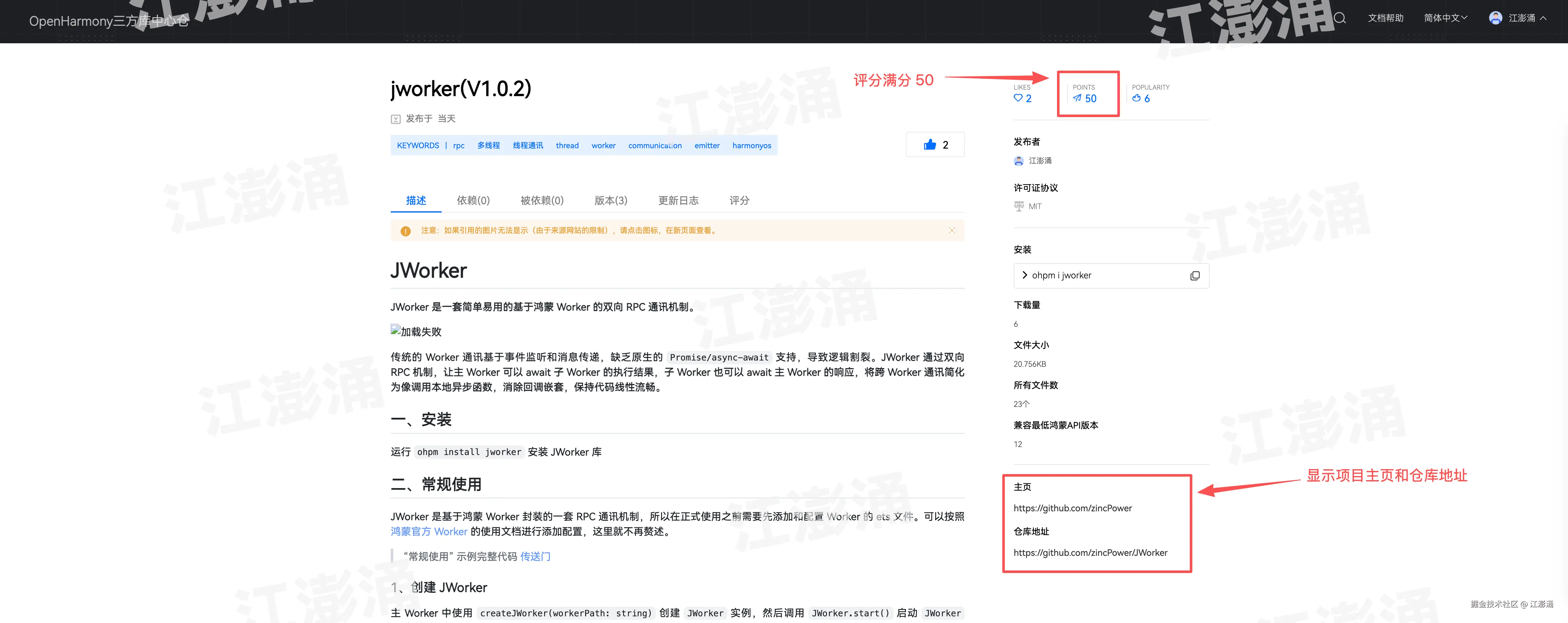 JWorker是一套简单易用的基于鸿蒙 Worker 的双向 RPC 通讯机制。 库地址:ohpm.openharmony.cn/#/cn/detail... 仓库地址:github.com/zincPower/J...