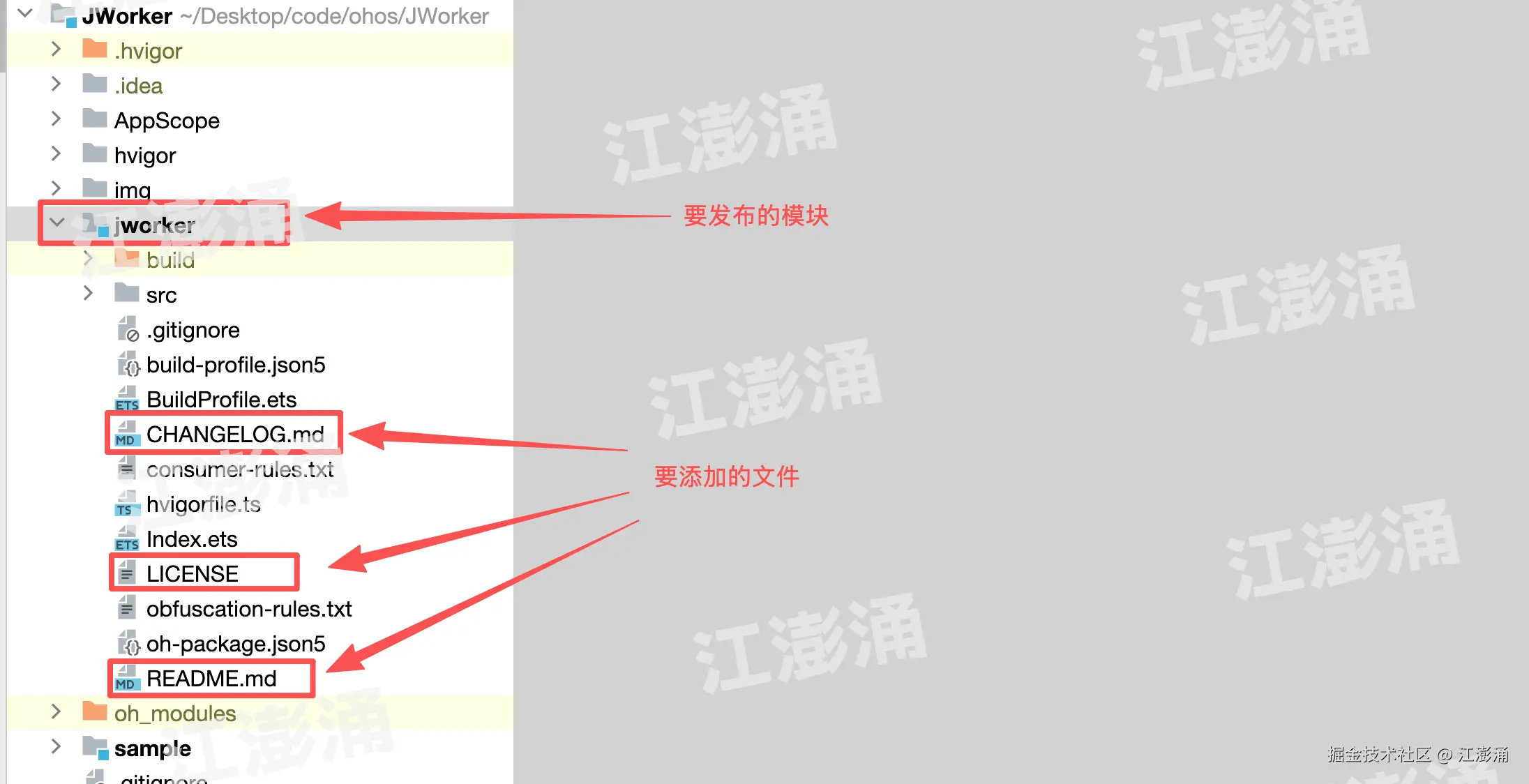 在发布的模块中添加这三个文件,需要与模块的 src 文件夹同层级。 具体结构如下图所示: