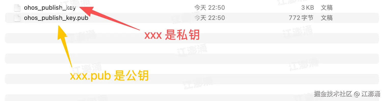 运行后会生成两个文件,私钥 ohos_publish_key 和 公钥 ohos_publish_key.pub 。