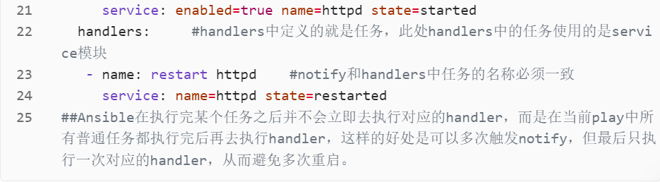 - Handlers:用于响应任务执行后的变更(notify 触发)。