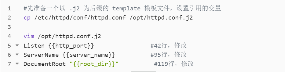 Jinja2 模板引擎在 Ansible 中用来动态生成文件。例如,在配置 Apache 时,可以使用模板文件来替换动态值。