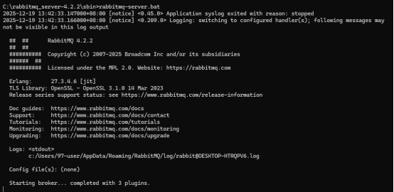 1、Erlang与rabbitmq的版本兼容说明:https://www.rabbitmq.com/docs/which-erlang,由于erlang28与rabbitmq的4.2.x未能完全兼容,故选用项目版本:erlang27、rabbitmq4.2.2