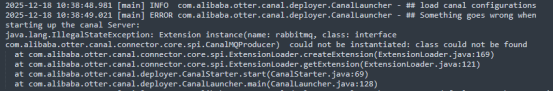 这里如果直接启动canal服务,会报错(查看日志文件:C:/canal.deployer-1.1.8/logs/canal/canal.log ):
