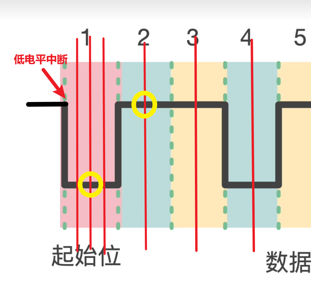 先用一个外部中断 ,触发低电平,然后延后半个电平 周期进入定时器开始定时接收,也就是取信号的中间位置 ,提高接收成功率,因为实际信号中,电平跳变时有突刺尖峰,特别是远距离的时候