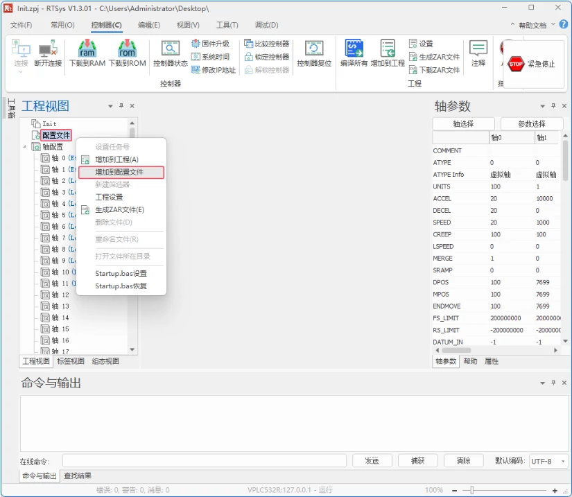 二、点击【轴参数初始化】进入轴控制界面,开始总线轴的手动调试运动。