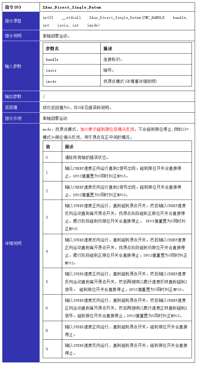 zmcaux.ZAux_Direct_Single_Datum(g_handle, param, 0); //清除控制器报警