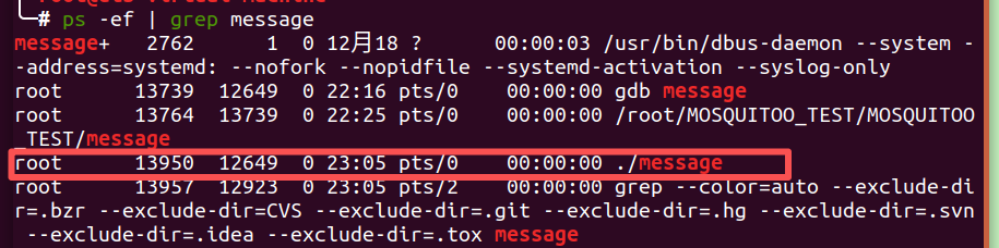 首先,运行message,然后使用ps打印运行的进程信息,根据进程号进行调试