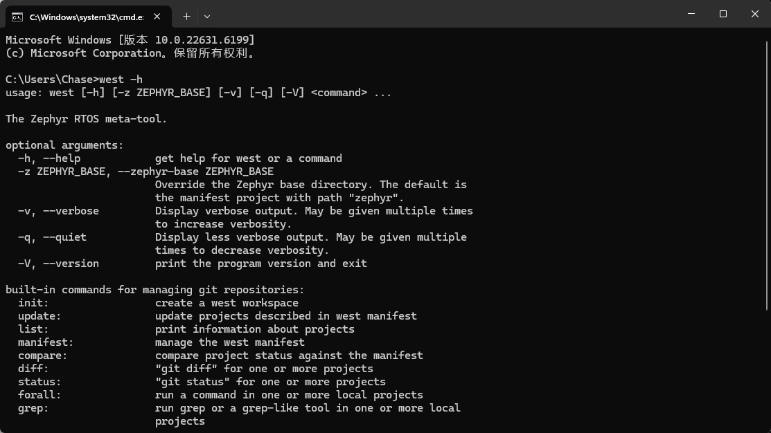 6、安装west:west通过之前安装的python进行安装,输入如下指令