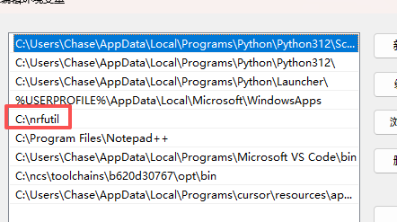 2、nRFutil.exe 是一个可执行文件,下载之后放在一个文件夹下,然后设置环境变量调用,这样就可以全局调用了,如下所示