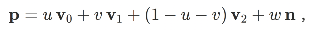 其中 v0, v1, v2为三⻆形顶点,