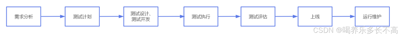 | 需求分析 | 测试计划 | 测试设计与开发 | 测试执行 | 测试评估 | 上线 | 运行维护 |