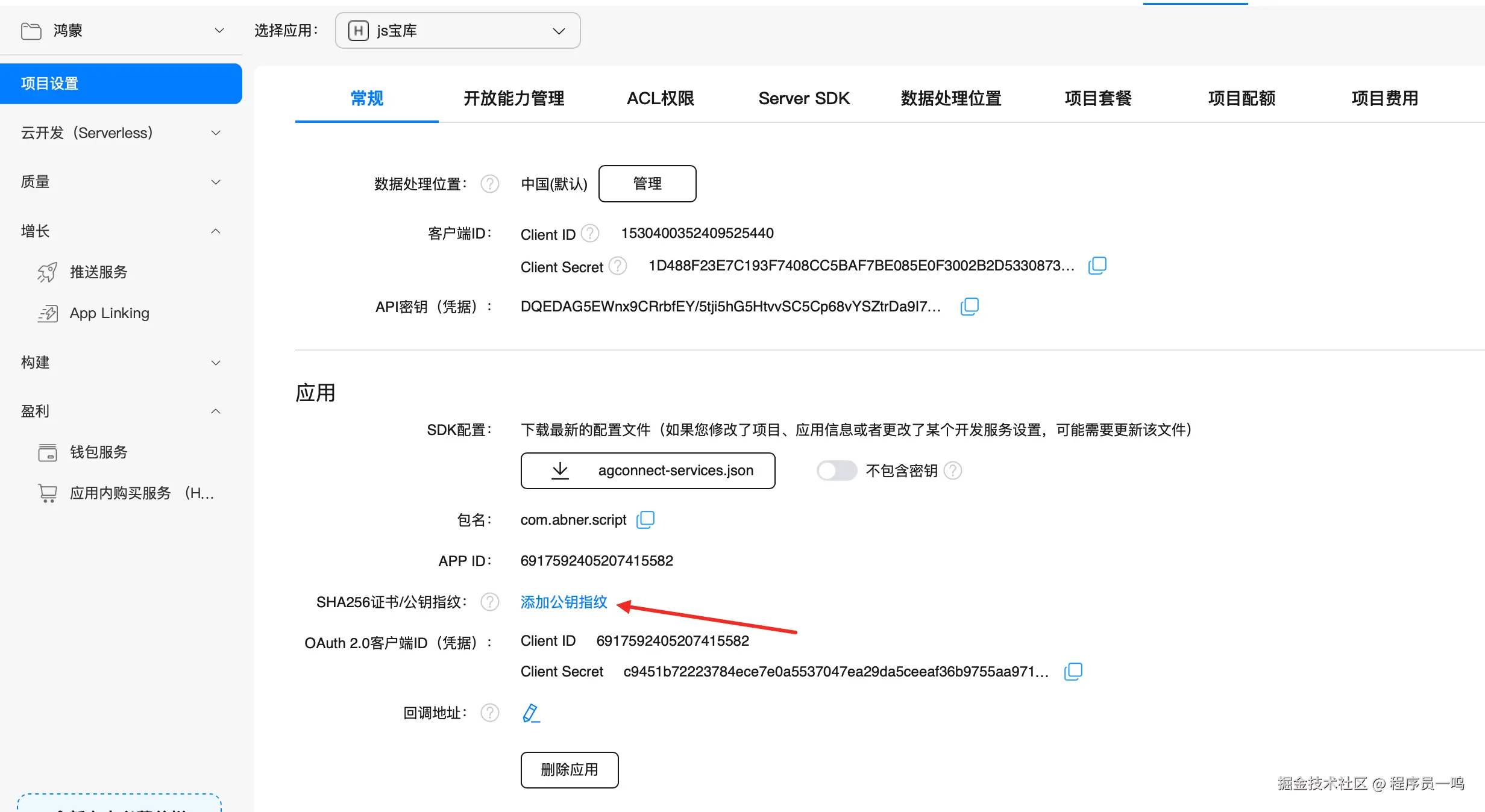 华为账号有一个开发前提,无论你是正式还是测试,一定要在 AppGallery Connect后台配置自己的公钥指纹,否则点击是报错的,公钥指纹,就是你所创建的发布证书或者测试证书。