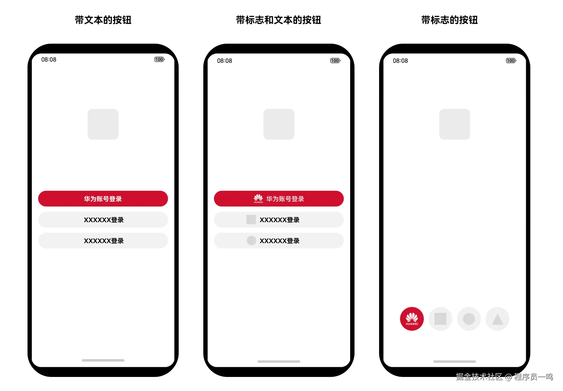 华为账号登录,有两种方式,一种是使用官方提供的登录按钮,一种是自己定义的按钮,无论哪种方式,都必须要遵循官方的设计规范;华为账号登录按钮包含文本、标志和文本、标志三种样式,以满足应用对界面风格一致性和灵活性的要求。