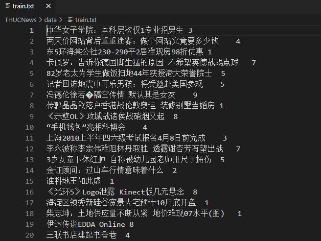 本博文采用的文本分类数据集主要包含七个类别,依次如下: