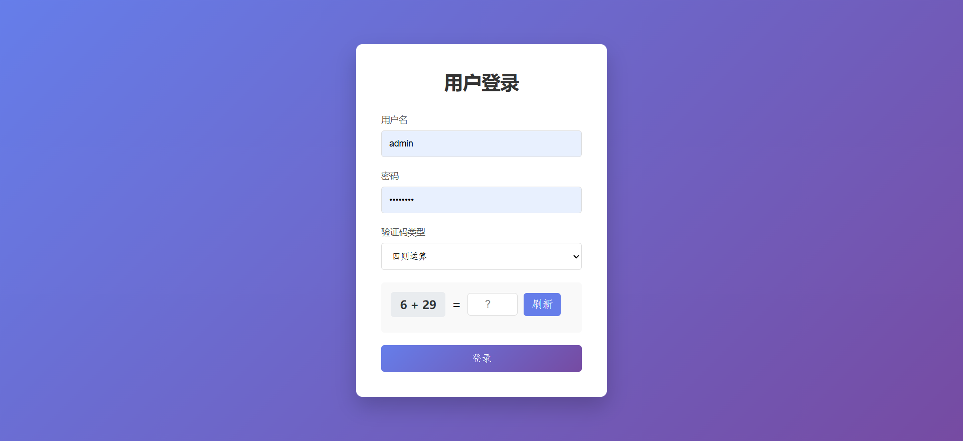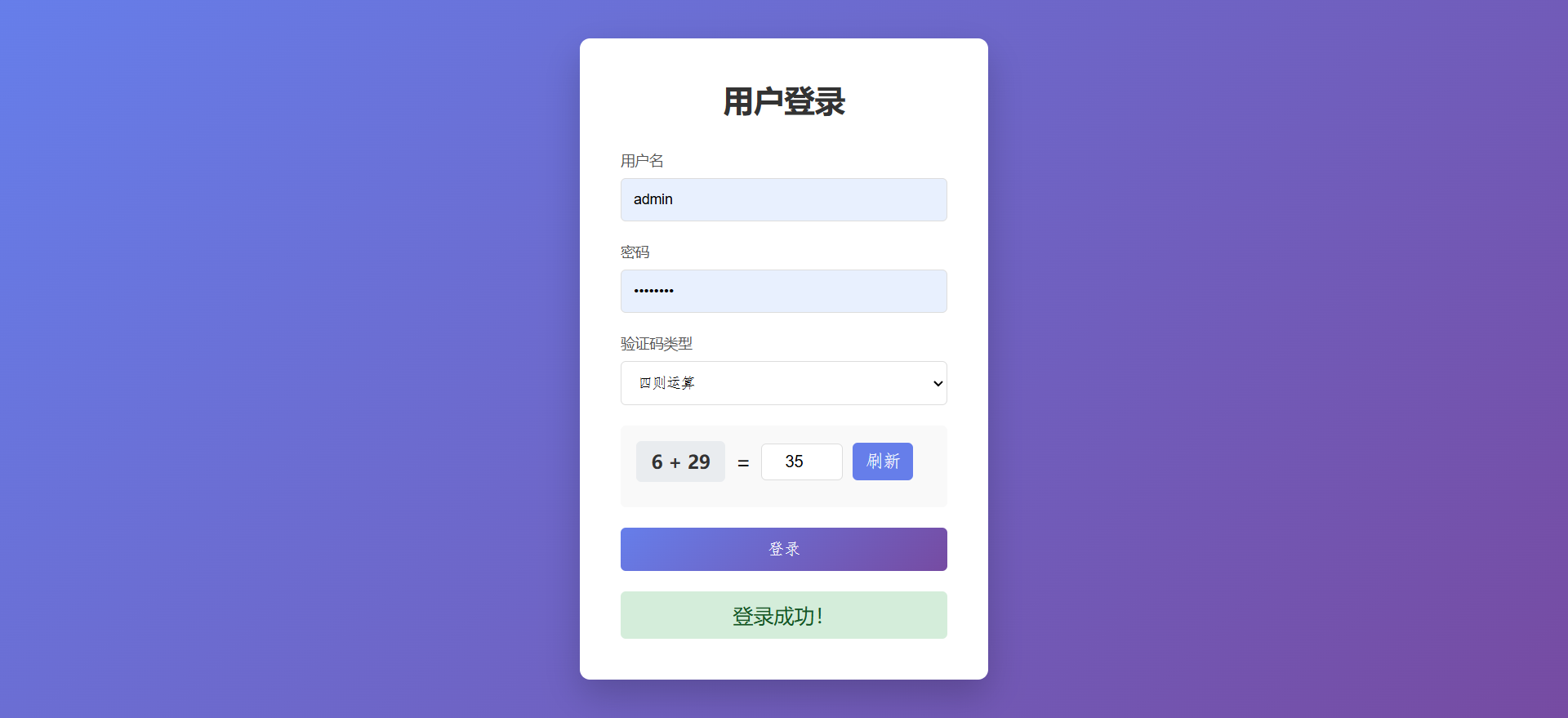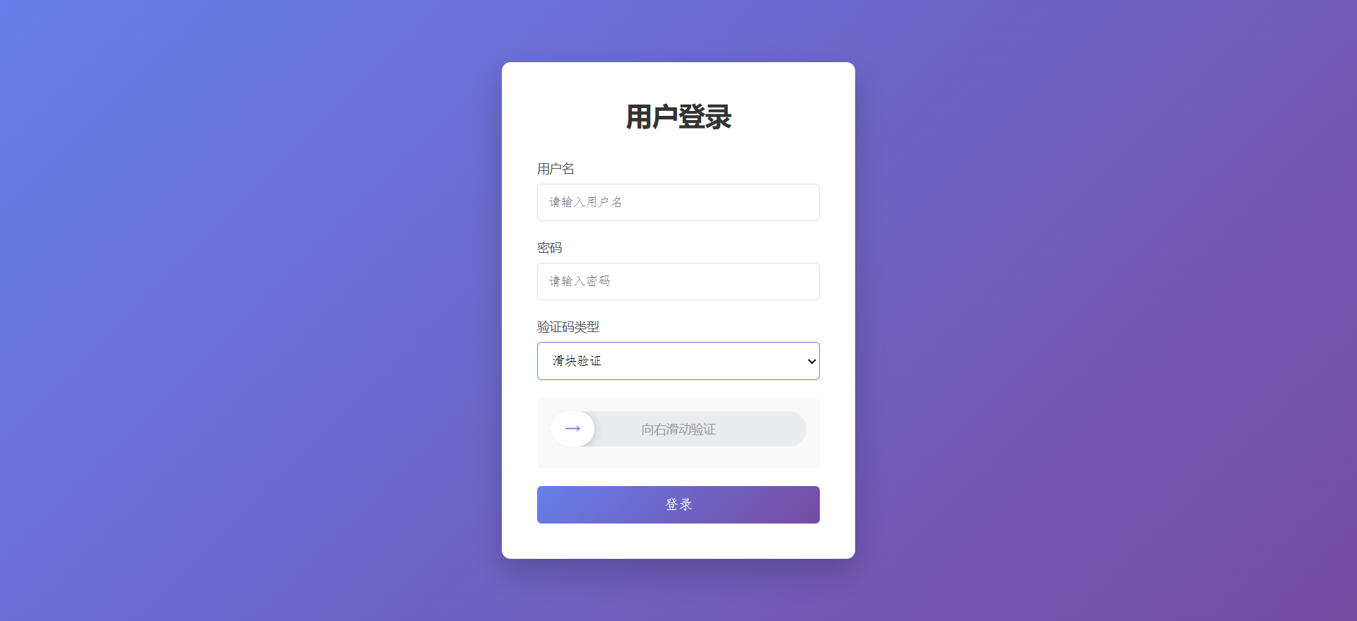 一个纯前端的登录验证码解决方案,提供原生 JavaScript 和 Vue 3 两种实现方式,包含四则运算、随机字符、滑块三种验证码类型。