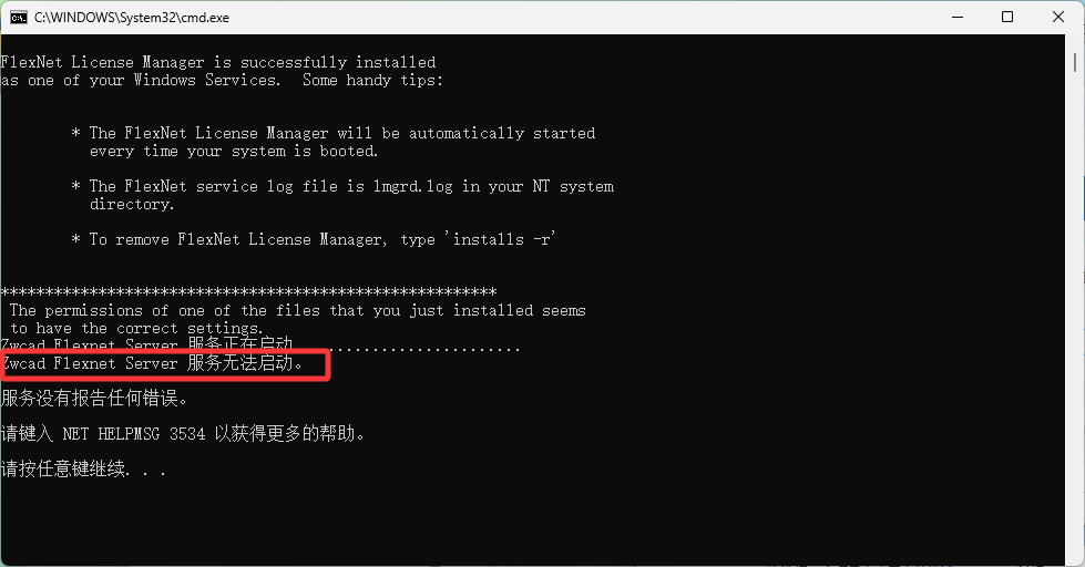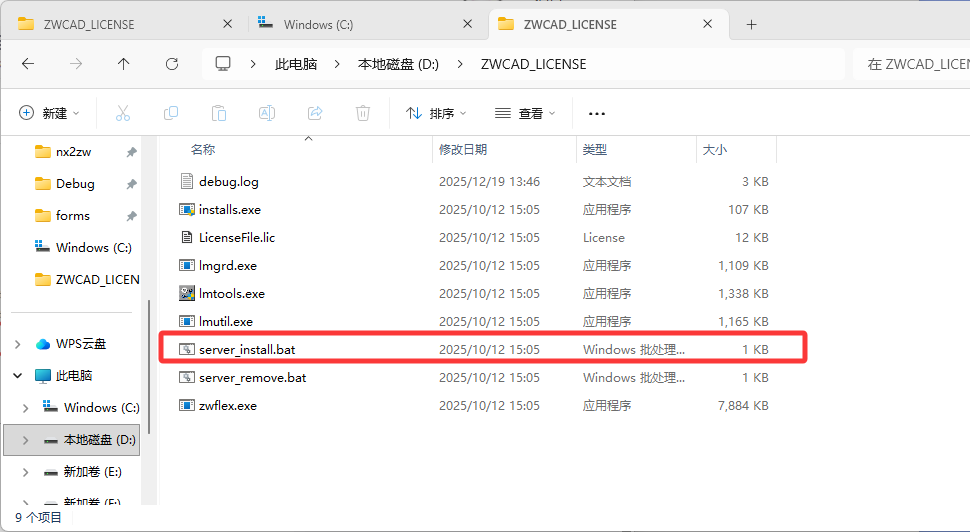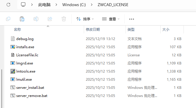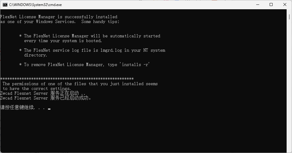 复制ZWCAD_LICENSE文件夹到C盘根目录,运行server_install.bat,显示服务已启动即可
