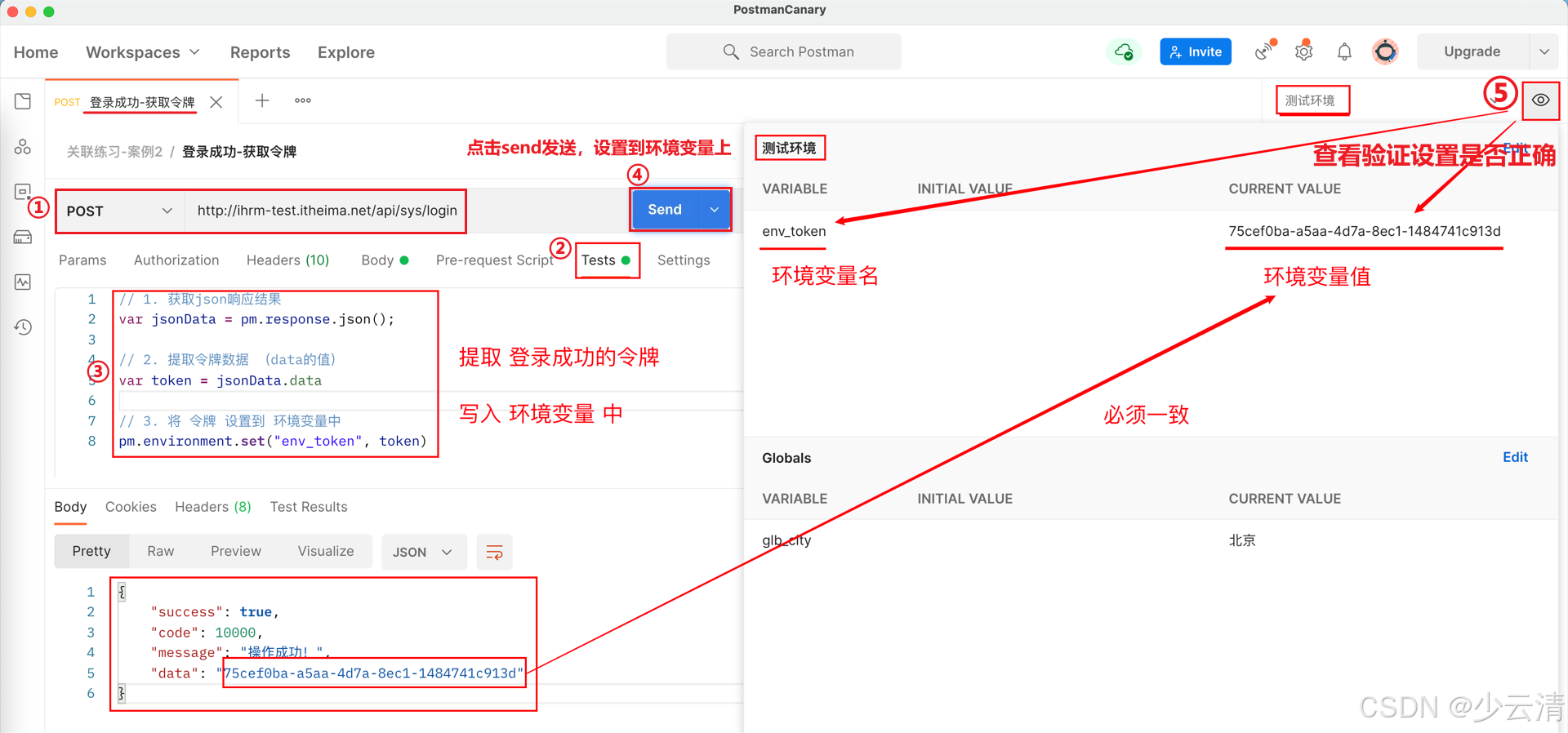3、点击 Send 按钮,发送 请求,查看设置的全局变量。
