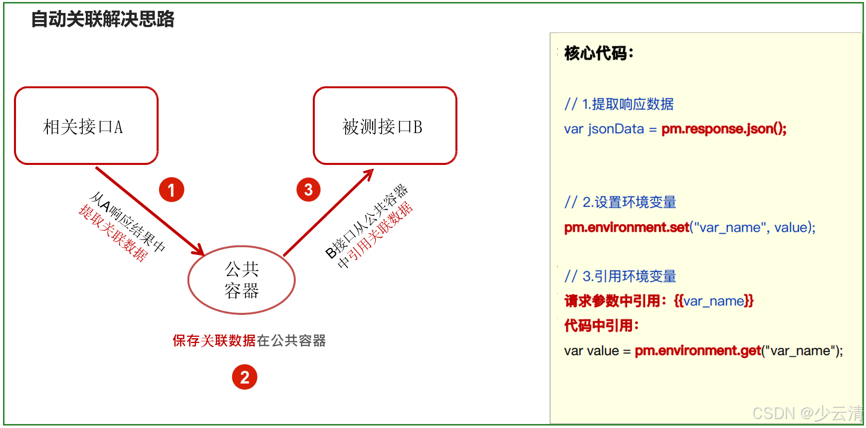 关联,是postman中,用来解决 http请求之间有依赖关系时,使用的一种技术。