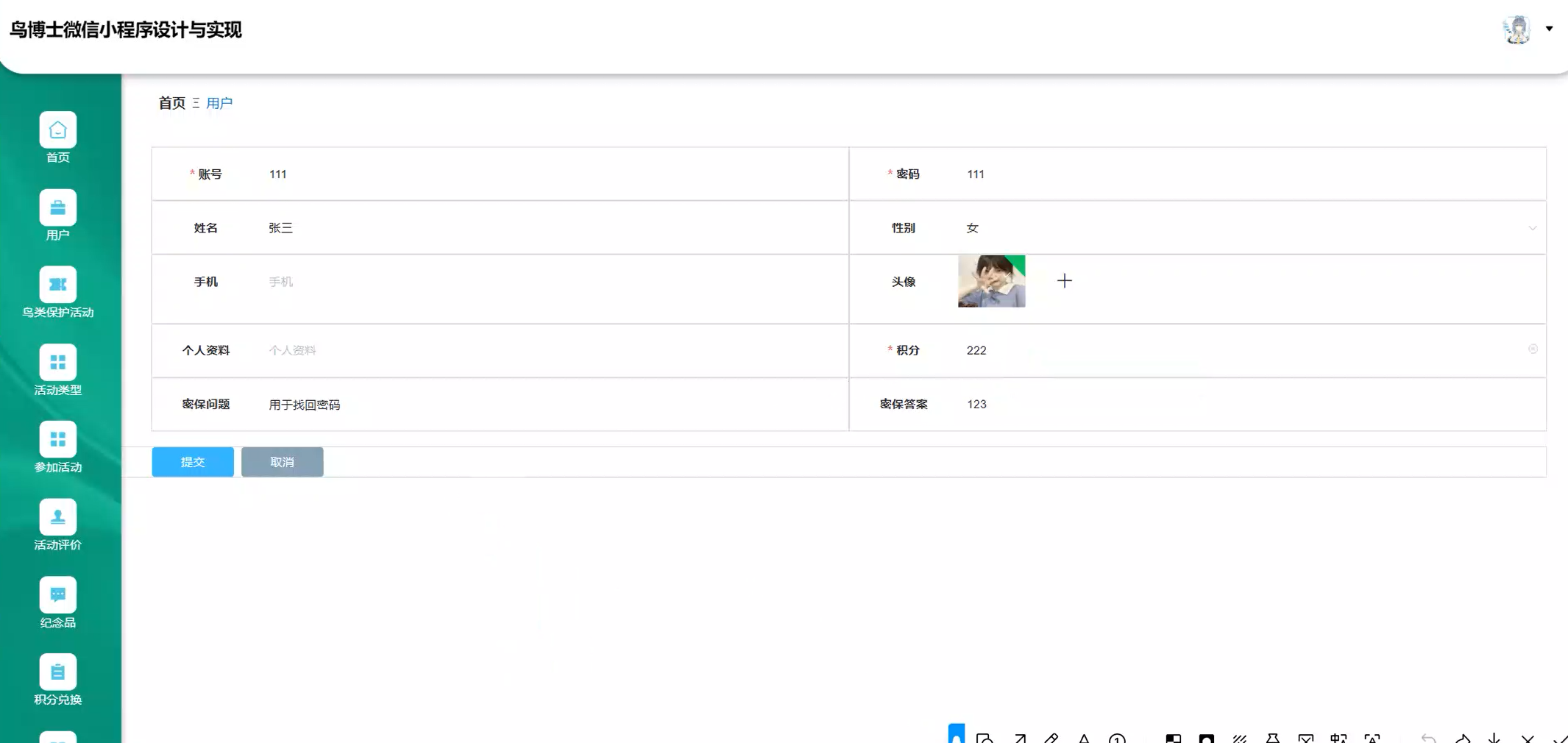 随着移动互联网的快速发展,微信小程序凭借其无需安装、即用即走、跨平台等特性,成为用户获取服务的重要入口,尤其在教育、科普领域展现出巨大潜力。传统鸟类知识获取存在信息零散、咨询响应慢、养护指导不精准等问题,难以满足鸟类爱好者、养鸟用户及科研人员的多样化需求。例如,普通用户需通过多个平台拼凑鸟类信息,科研人员需手动收集民间观鸟数据,效率低下且数据质量参差不齐。基于微信小程序的"鸟博士"系统,通过整合鸟类识别、科普查询、在线咨询、养护方案定制等功能,构建"科普-互动-科研"的生态闭环,既能降低用户获取专业知识的门槛,又能为科研提供高质量数据支持,成为解决行业痛点的关键技术方案。