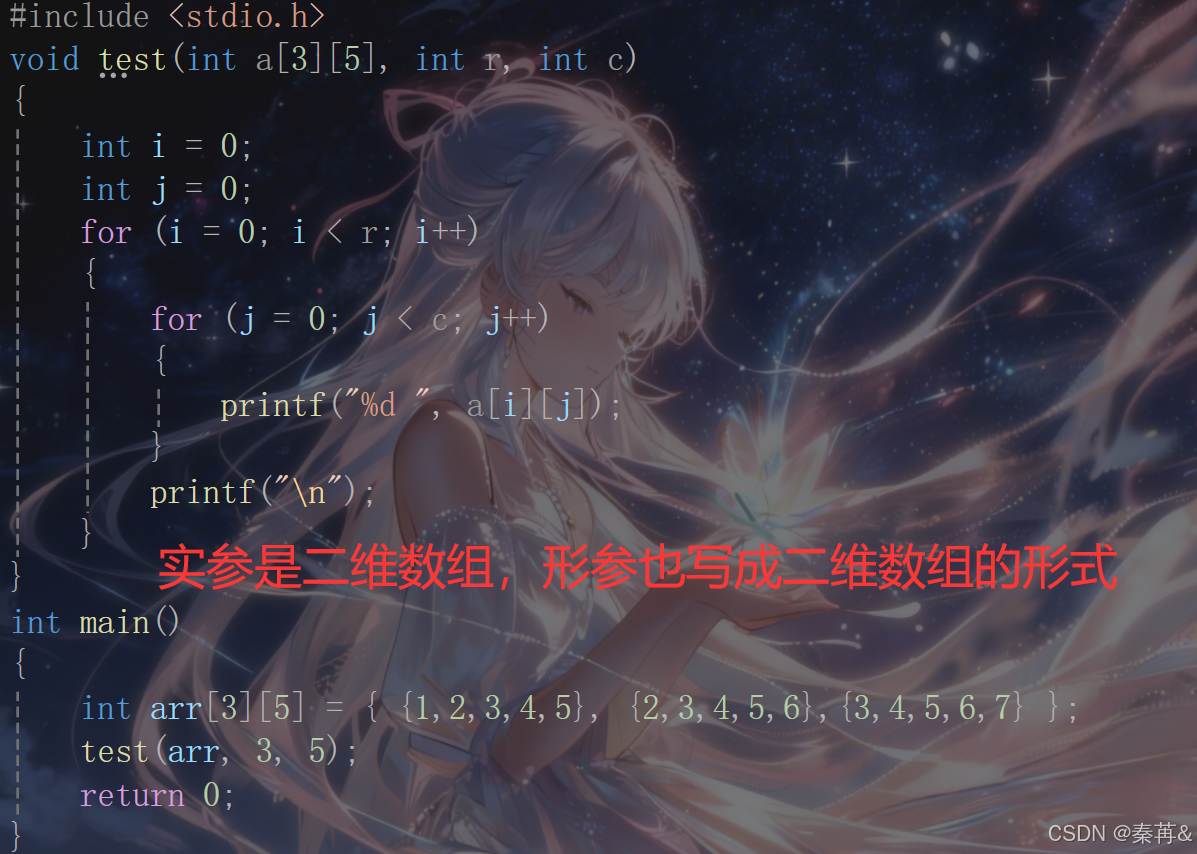 之前,我们有⼀个二维数组的需要传参给⼀个函数的时候,我们是这样写的: