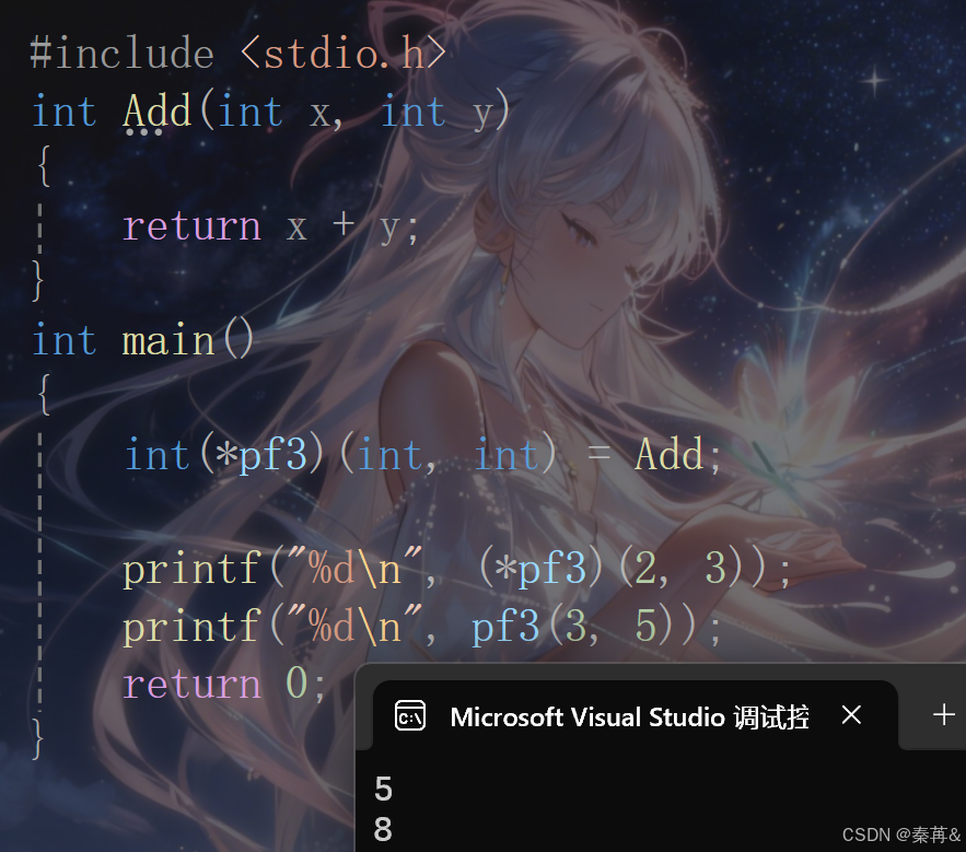 int(*pf3)(int x, int y) = &Add;//x和y写上或者省略都是可以的