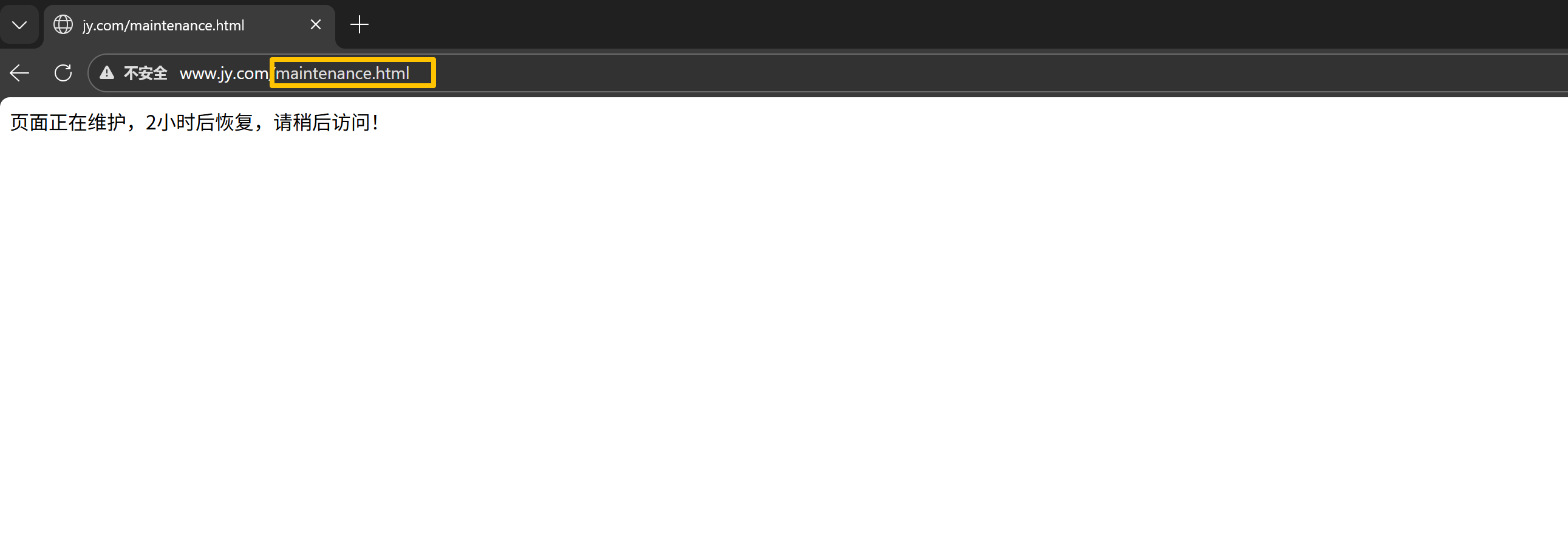 2、访问http://www.jy.com/article,观察现象是否会进行跳转到maintenance.html,是否会显示页面正在维护,2小时后恢复,请稍后访问!
