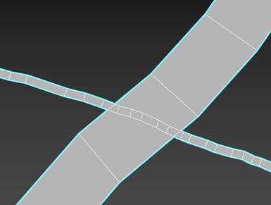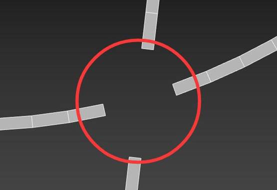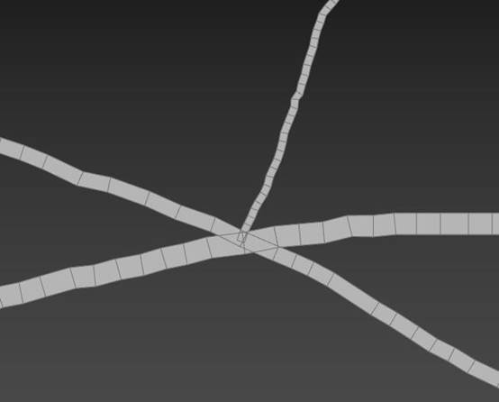 **(一)生成交叉路口:**这是PolyRoad插件最主要也是最具特点的功能,它弥补了许多3dmax道路插件在这方面的不足:支持多交叉路口生成;支持不同宽度交差路口生成。这是PolyRoad插件的最大特点。