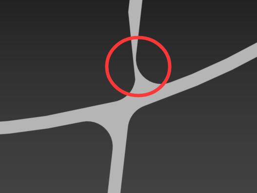 有时生成的交驻路口,部分道路宽度出现较大偏差,如图: