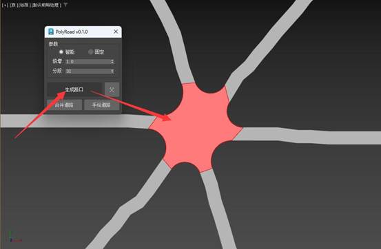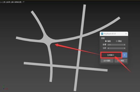 2.打开PolyRoad插件,单击"生成路口"按钮,生成交叉路口!
