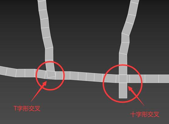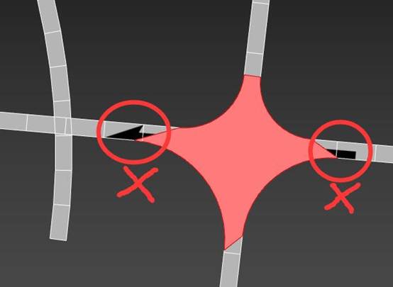 1.参与交叉路口制作的多边形道路,在路径方向上需要具有适当的细分,如图: