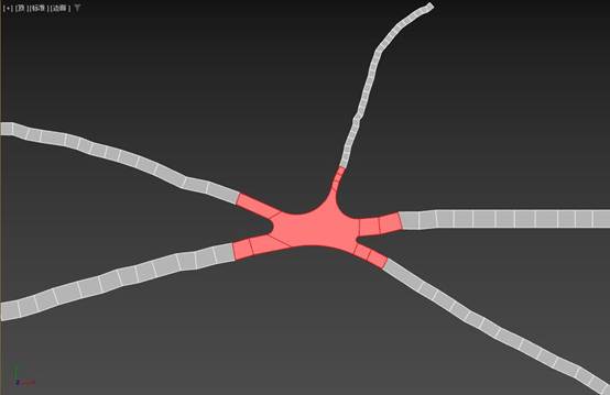 1.下图显示的是已经生成好的交叉路口,我们可以在这个基础上选择更多的面,以便参与到下一次交叉路口的生成,如图: