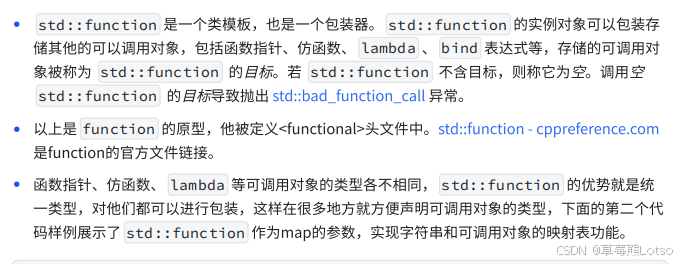 function包装成员函数时,需传入this指针或对象(隐含第一个参数);bind的占位符_n对应新可调用对象的第 n 个参数,顺序不可混淆。