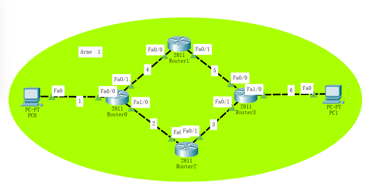3.R0/R1/R2/R3配置OSPF单区域Area 1