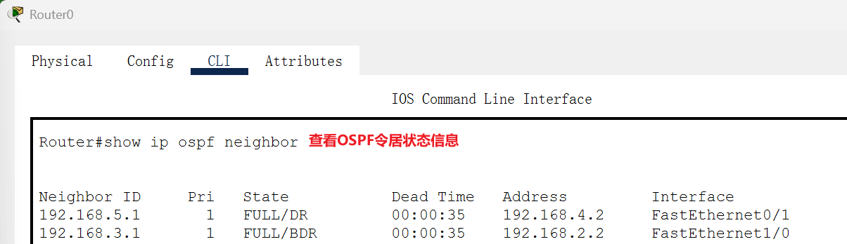 5.查看路由表信息/OSPF允许状态信息/OSPF邻居状态信息